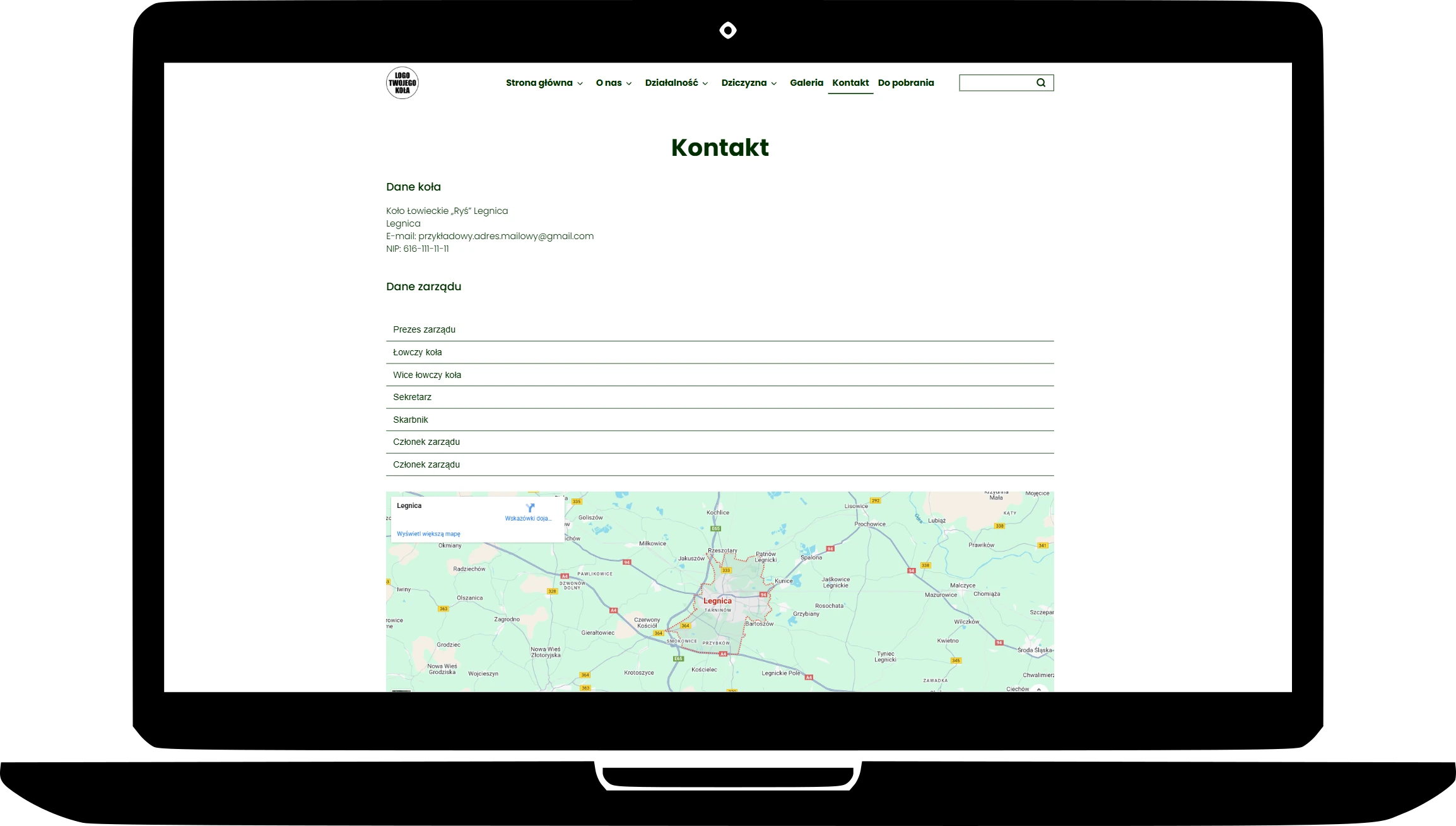 - Gotowy szablon z podstawowymi sekcjami: historia koła, aktualności, galeria zdjęć, kontakt itd…