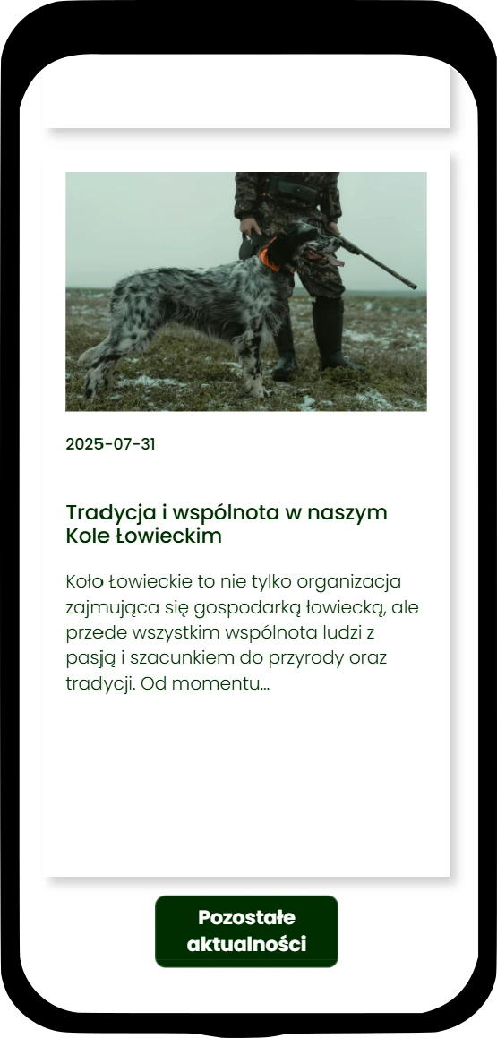 Każde koło łowieckie ma swoją unikalną historię, tradycję i dorobek, który warto zachować i pokazać światu. Dzięki klow.pl możecie opowiedzieć tę historię w sposób profesjonalny, atrakcyjny wizualnie i w pełni dostępny online – dla członków, sympatyków oraz przyszłych pokoleń myśliwych.