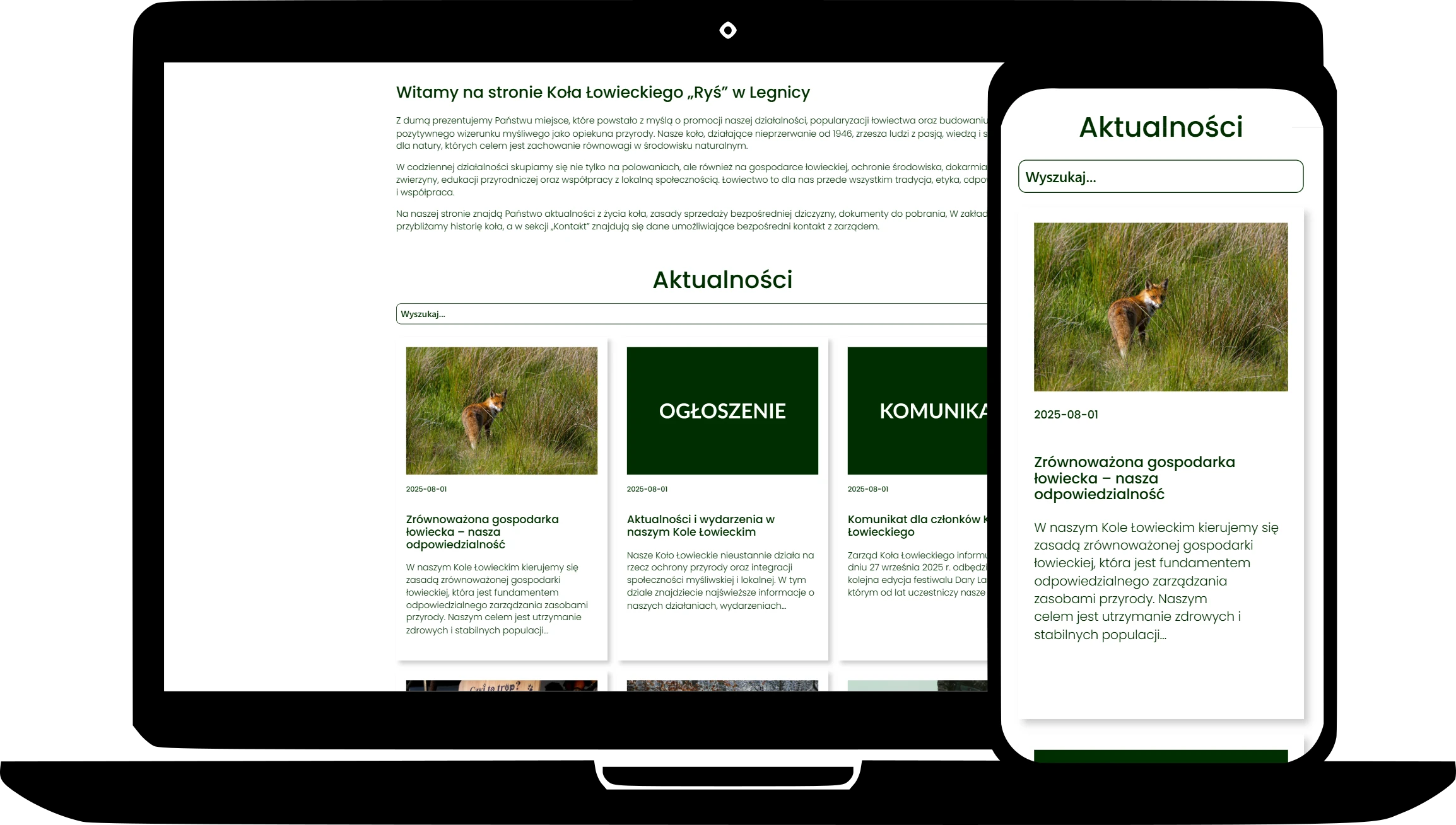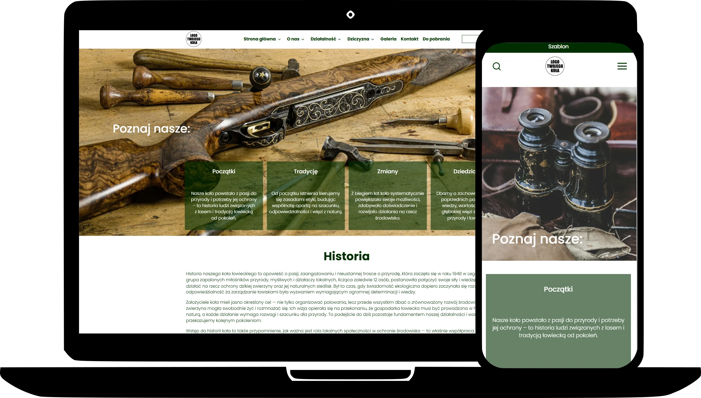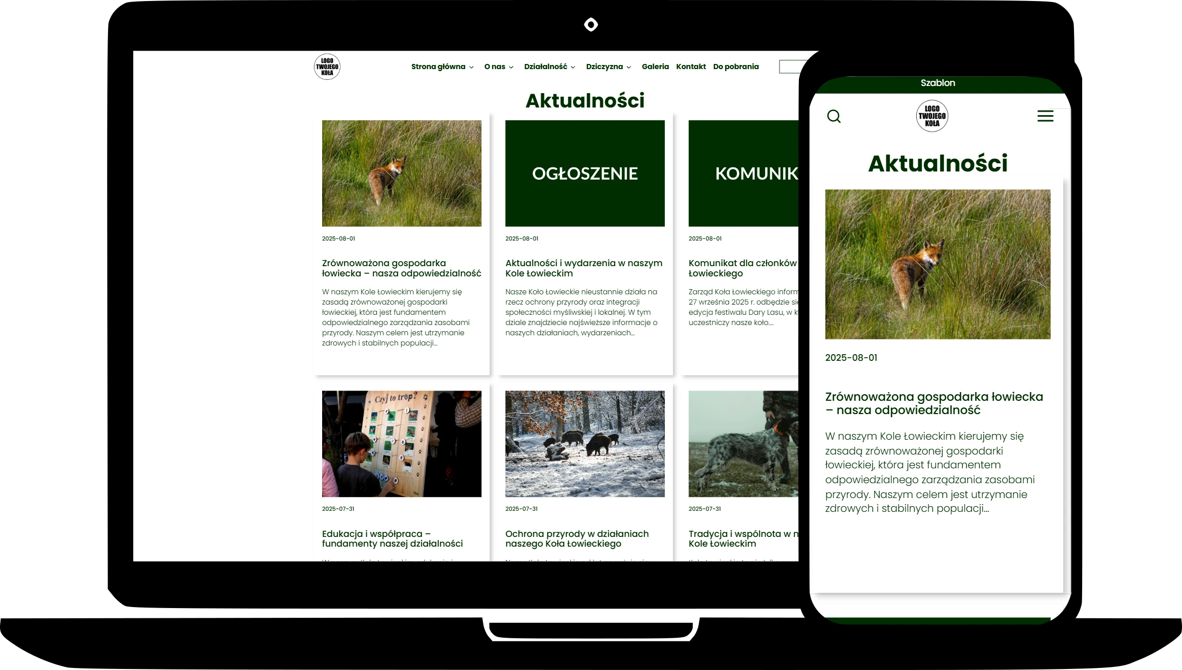 Wersja Premium to inwestycja w profesjonalny wizerunek koła łowieckiego, pełną kontrolę nad stroną i komfort zarządzania treścią. Dzięki niej Twoje koło będzie mogło w pełni wykorzystać potencjał internetu, prezentując tradycję, działalność i wydarzenia w nowoczesnej, atrakcyjnej formie.